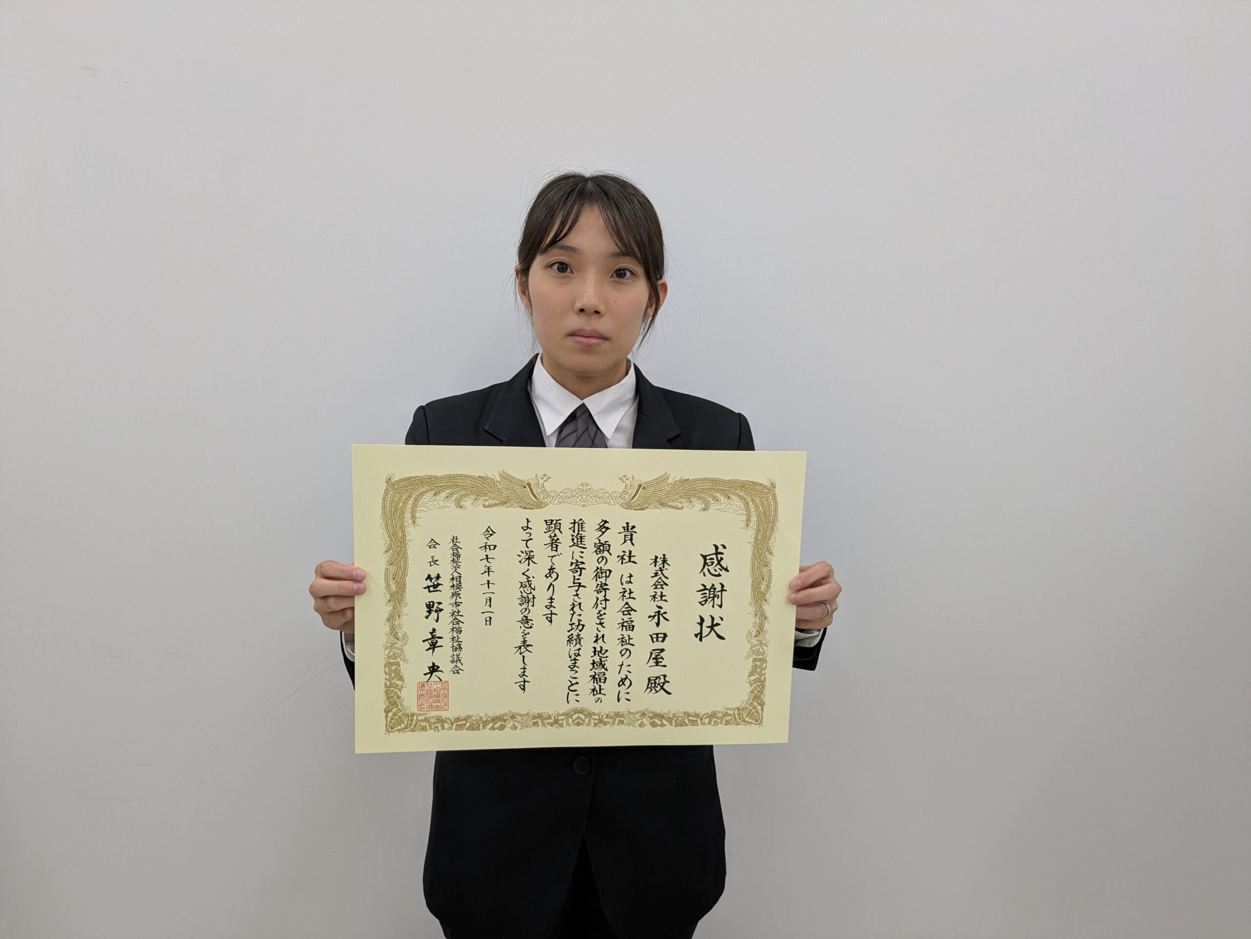この度、永田屋は、長きにわたる継続的な寄付による社会福祉への貢献が認められ、「第56回 相模原市社会福祉大会」(主催:相模原市社会福祉協議会)において表彰を受けました。