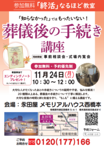 メモリアルハウス西橋本にて、葬儀後の手続き講座を無料で開催いたします。