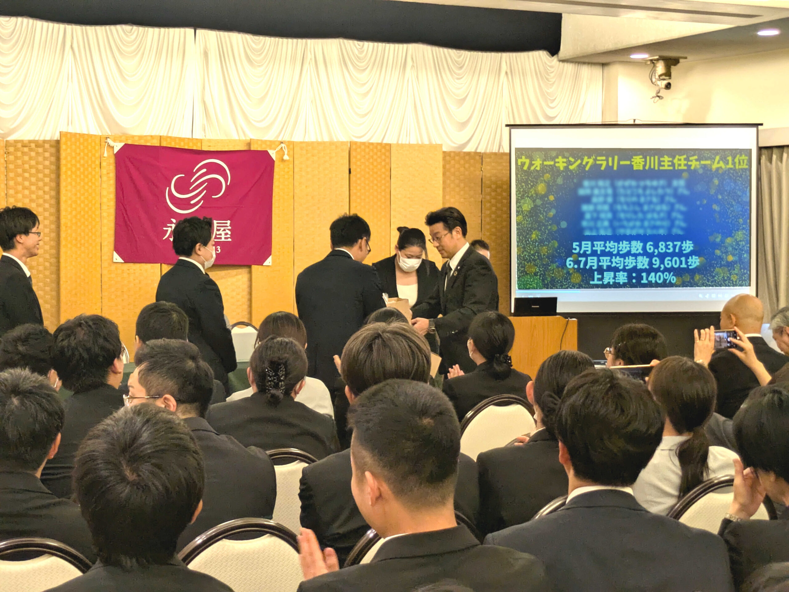 ▲社内対抗ウォーキングラリー開催。優秀だったチームを表彰。